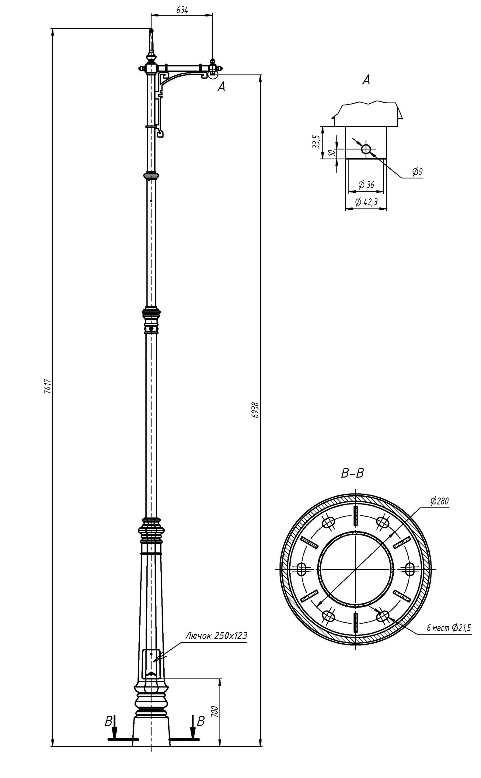 Ствол опоры окрашивается по порошковой технологии, декоративные элементы – по технологии жидкой окраски.