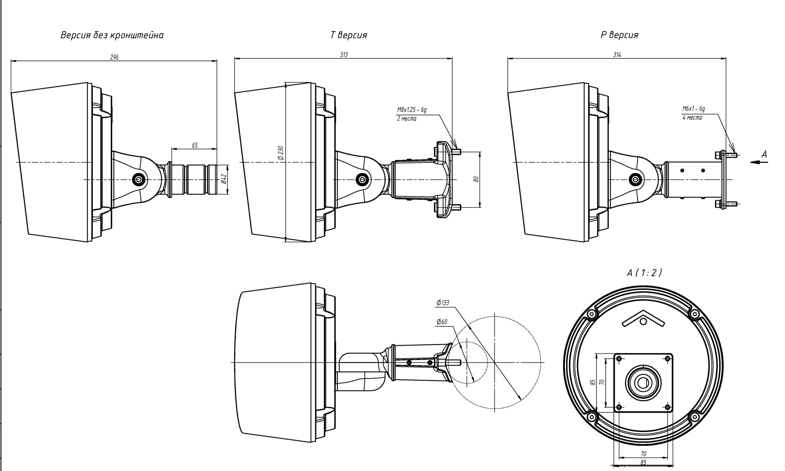 Т — кронштейн для установки на опору с диаметром от 60 до 133 мм.