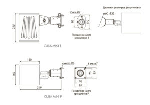 *Световой поток в таблице указан для цветовой температуры 4000К. Возможен вариант исполнения 2700К(код 27К). Код для заказа состоит из кода изделия, кода кронштейна, кода оптики, кода цветовой температуры и кода цвета изделия из базовой палитры, например: CUBA MINI 40 P W 3K RED/MR RAL 3020