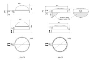 Световой поток в таблице указан для варианта 4000К, SM. Код для заказа светильника состоит из кода изделия, кода оптики, кода цветовой температуры и цвета корпуса, например: LIGA C1 112M SM 3K W/MR RAL 9016