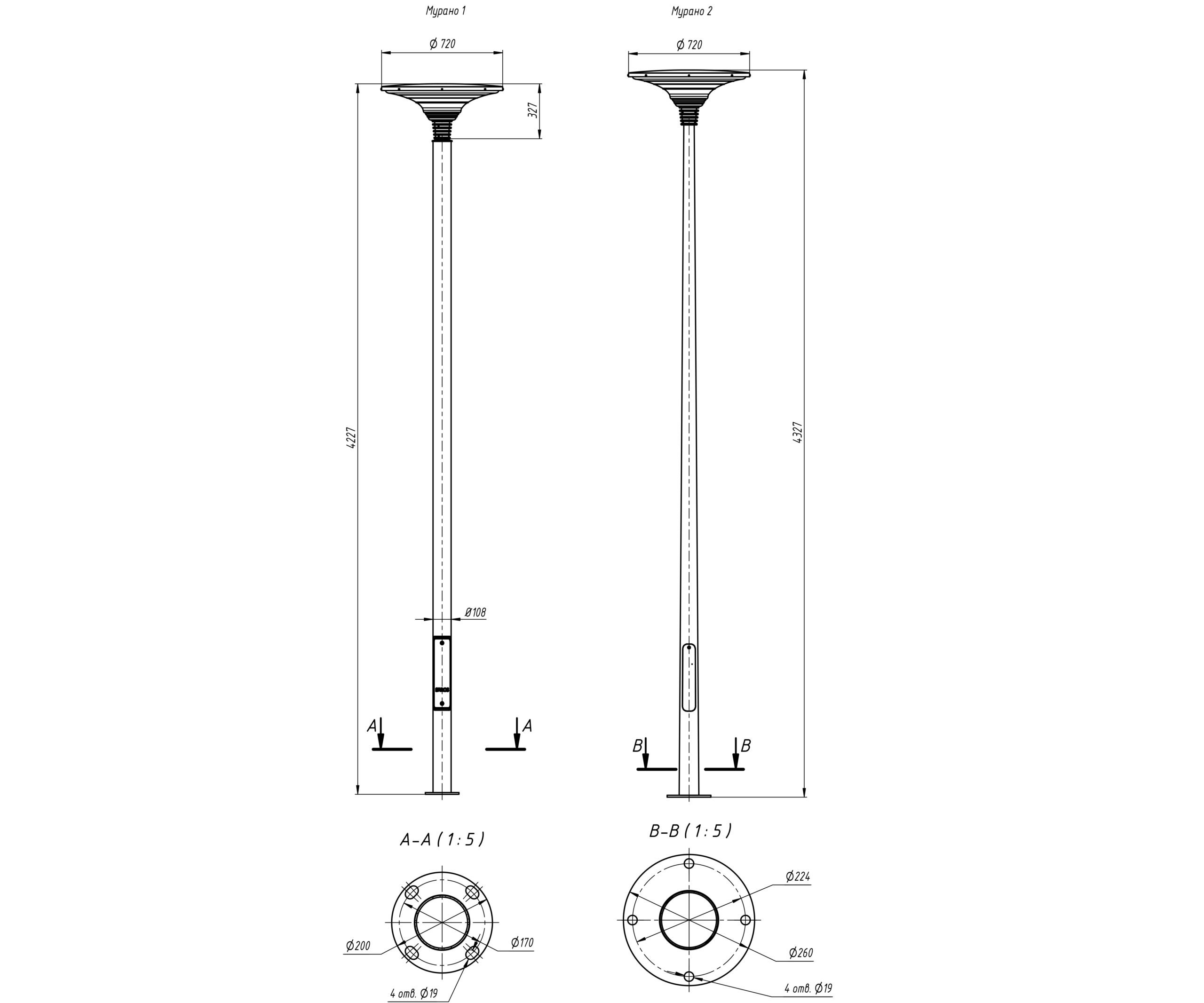 Осветительная система МУРАНО предназначена для освещения городских общественных пространств, парковых и пешеходных зон.