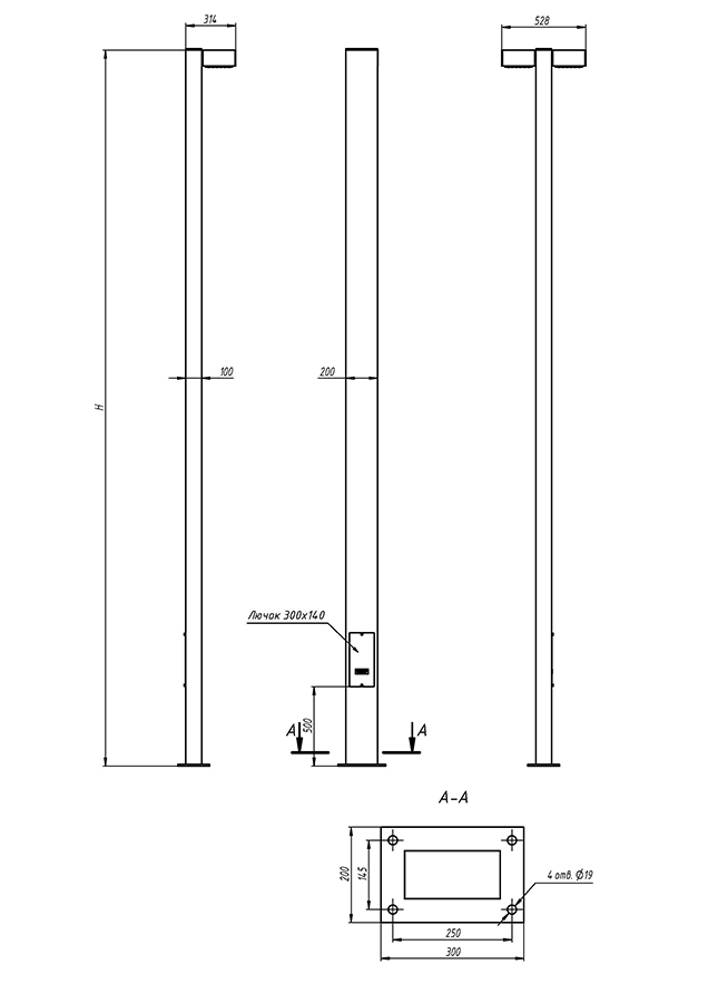 Возможна окраска плоскостей ствола опоры в разные цвета (под заказ).