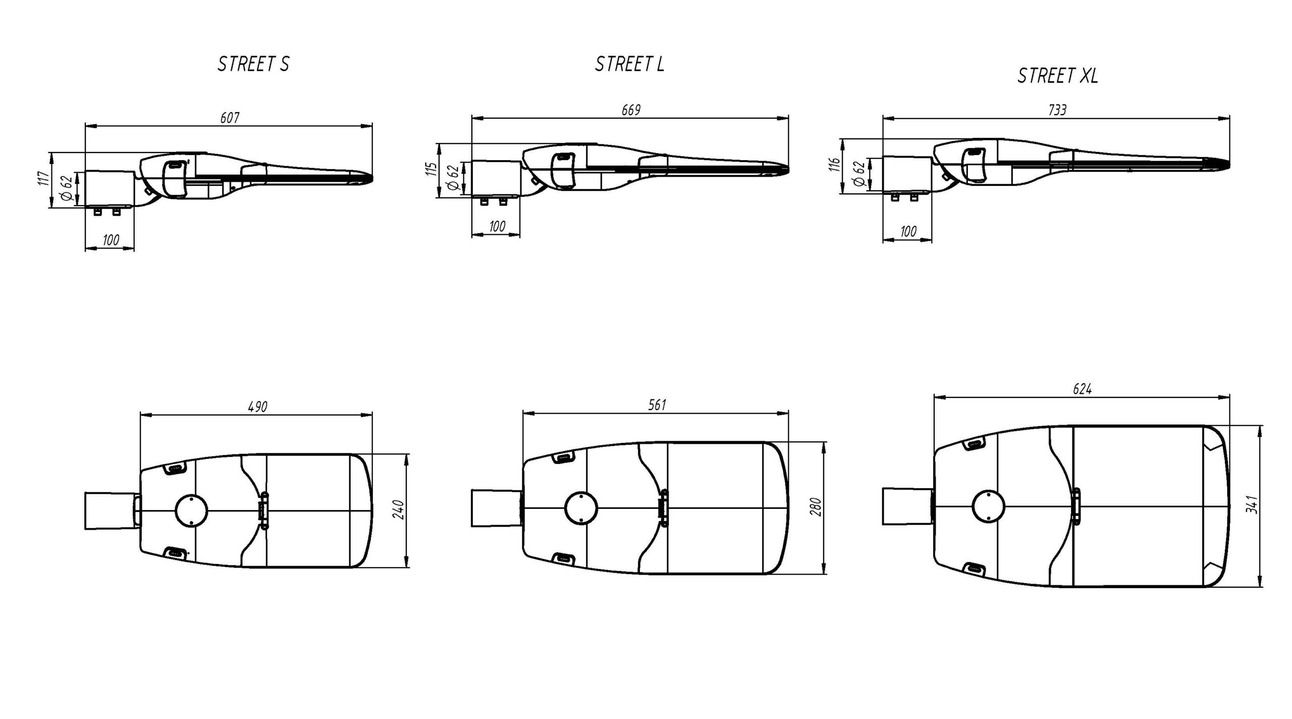 Уличный светильник СТРИТ S,L,XL предназначен для установки на опору для освещения площадей, дорог, дворов и т.п.