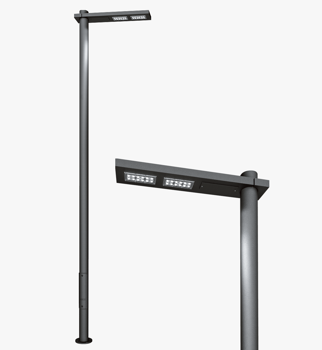 Система состоит из стальной опоры и светильника из алюминиевого сплава.